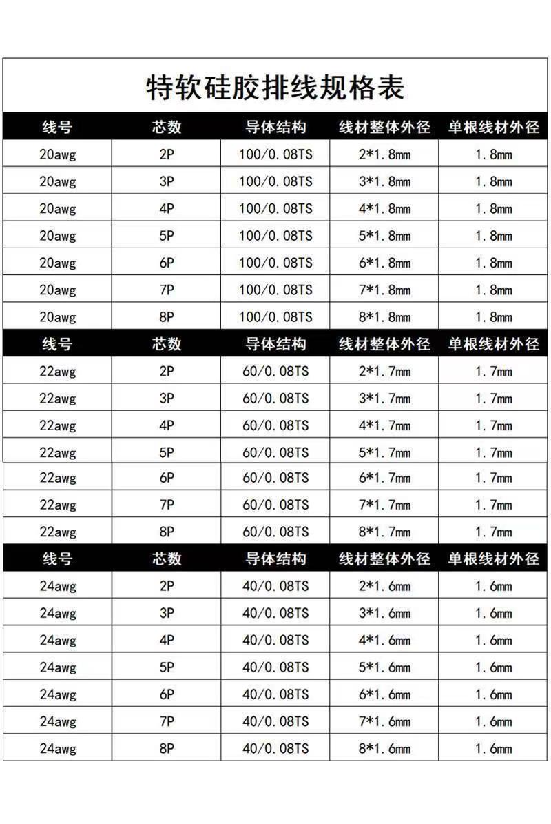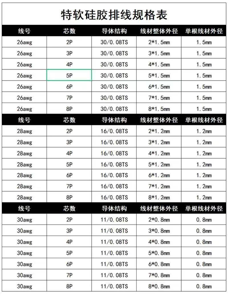 硅胶排线,工业名称为AGR硅橡胶电线,是采用硅胶材料加工而成的电线,适宜温度范围为-60°-200°,电压300/500V,导体材质是镀锡铜线,绝缘体是硅橡胶,编织层是玻璃纤维+硅树脂。